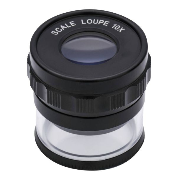 Lupa pomiarowa ze skalą długości i pierścieniem do ustawiania ostrości.