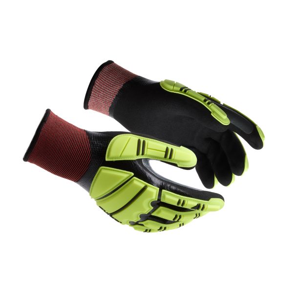 Elastyczna, ciasno dopasowana rękawica robocza na zimę, wykonana z tworzywa Guide HXFIBR™ — materiału, który zapewnia przełomową ochronę przed przecięciem, a zarazem jest przyjemny w dotyku i daje znakomitą czułość w opuszkach. Nitrylowa powłoka na rękawicy gwarantuje pewny chwyt. W pełni powlekana pierwsza warstwa nitrylowa i druga warstwa powlekająca dłoń. Podszewka 18 gg połączona z akrylową podszewką wewnętrzną dla ochrony przed zimnem. Poziom ochrony przed przecięciem E. Ochrona przed uderzeniami na wierzchu dłoni i wzmocnienie na kciuku, dopuszczone do kontaktu z ciepłem 2 stopnia i bezpieczne dla żywności. Możliwość obsługi ekranu dotykowego. Atest ESD