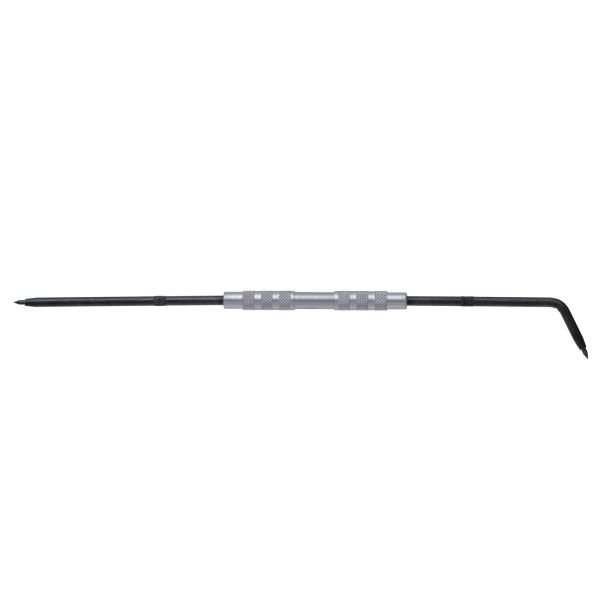 Z jednym wierzchołkiem prostym a drugim odgiętym. Wierzchołki utwardzane. Z rękojeścią okrągłą, radełkowaną. Pakowane pojedynczo w pochewce z tworzywa.