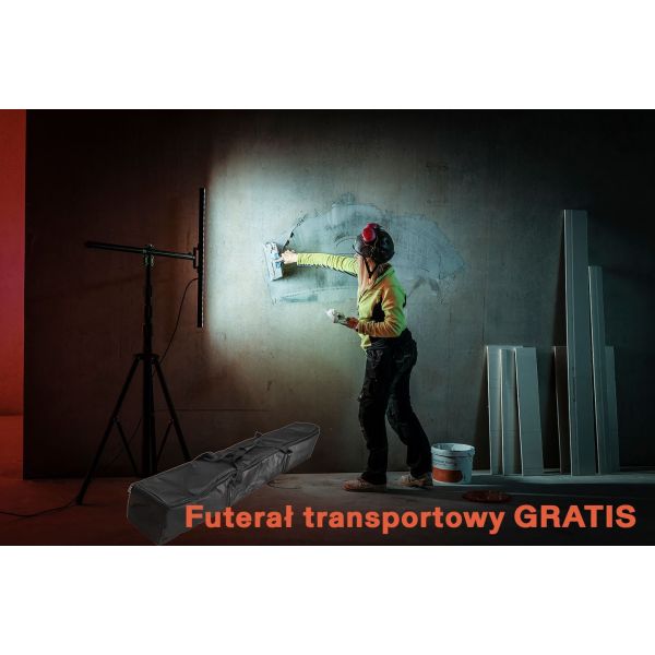 Lampa jest zaprojektowana specjalnie pod kątem możliwości wykrywania nierówności ścian, sufitów i podłóg. Jest to lampa dla profesjonalistów, którym zależy na wydajności i profesjonalnym wyniku pracy. Lampa emituje strumień światła 5000 lm o małym rozproszeniu. Oświetla wystarczająco duży obszar, a jednocześnie, dzięki małemu rozproszeniu, uwypukla wszelkie nierówności struktury powierzchni. Lampa jest dostarczana z elastycznym statywem i wyposażona w wygodny w użyciu uchwyt. W zestawie futerał na lampę i statwy GRATIS.