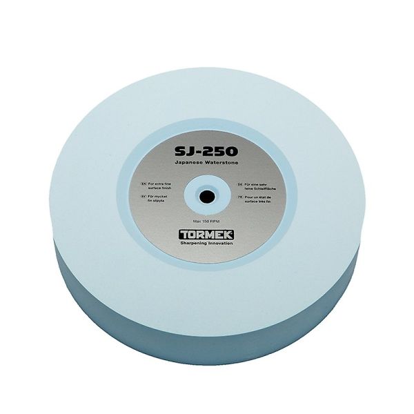 Powierzchnię kamienia szlifierskiego należy czyścić w regularnych odstępach czasu w celu usunięcia drobnych cząstek stali. Można to zrobić za pomocą drobnej strony obciągacza kamienia SP-650 lub grubej strony gąbki. W przypadku japońskiego kamienia wodnego SJ-250 nie należy używać szorstkiej strony równiarki, ponieważ spowoduje to uszkodzenie kamienia szlifierskiego. Japoński kamień wodny SJ-250 pasuje do szlifierek Tormek T-8, Tormek T-7 i wcześniejszych modeli Tormek z tarczą szlifierską o średnicy 250 mm i szerokości 50 mm. Mniejsza wersja, japoński kamień wodny SJ-200, jest również dostępna dla naszego kompaktowego modelu Tormek T-4.