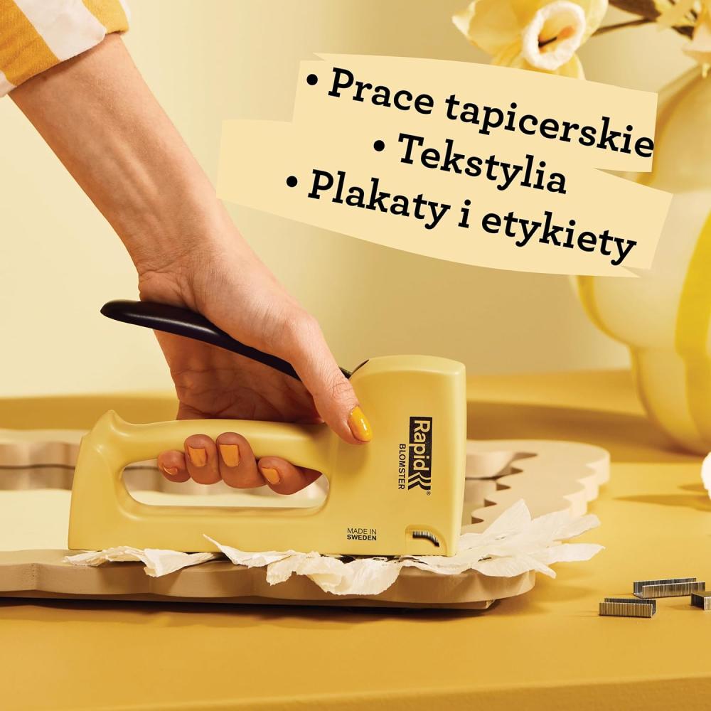 Jakość i niezawodność ze Szwecji ZSZYWACZ RĘCZNY TAPICERSKI produkowany jest w mieście Hestra w Szwecji, gdzie jakość i niezawodność są priorytetem. To doskonałe połączenie funkcjonalności i ekologicznych wartości, które pozwala Ci na mądre budowanie przyszłości. Co Ty możesz zrobić dla środowiska? Każdy z nas może wprowadzić pozytywne zmiany w swoim codziennym życiu. Oto kilka prostych kroków, które możesz podjąć: Wybieraj produkty wykonane z materiałów z recyklingu - zszywacze RAPID BLOOMSTER to idealne rozwiązanie. Dbaj o segregację odpadów i ich ponowne wykorzystanie. Inwestuj w jakościowe, trwałe narzędzia, które posłużą Ci przez długi czas. Zachęcamy do świadomego wyboru i dbałości o naszą planetę. Razem możemy stworzyć lepszy świat dla przyszłych pokoleń!